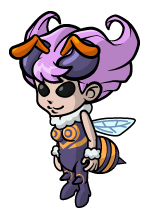 Q-Bee can also apparently change form, as her intro animation shows her magically grow from a small bee into her normal form.